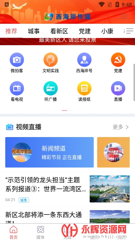 西海岸传媒app有着最及时、最权威、最客观的西海岸新闻资讯,并设有专题、电台、生活板块,全面展示青岛电视台黄岛广电中心各档优势节目。