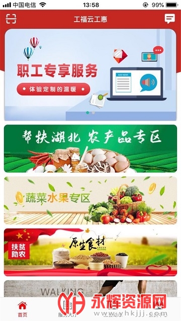 工会服务:工会是为职工谋取利益的,所以会有自己的特色服务,用户可以随时查看工会的服务,看哪些服务是适合自己的。