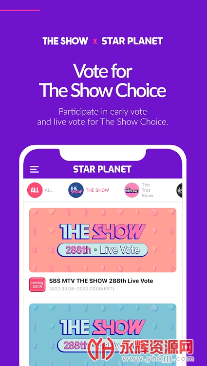 2、参与“SBS MTV THE SHOW”、“SBS MTV THE TROT SHOW”,“SBS MTV LIVE UNPLUGGED”的投票。投票让我的艺术家像明星一样闪耀。