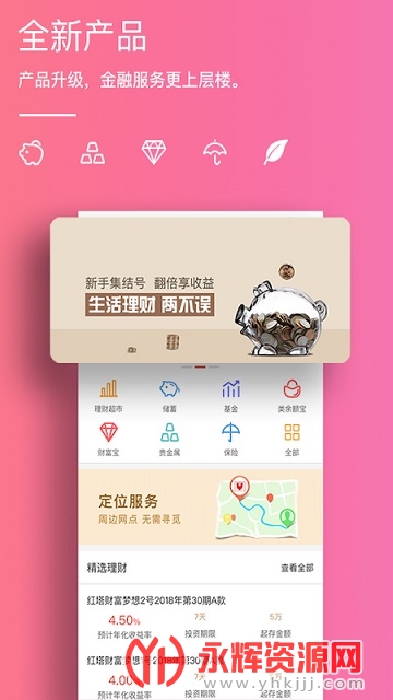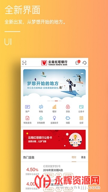 云南红塔银行手机app是一款非常好用的互联网+网银服务手机软件,软件专门为云南红塔银行的朋友精心打造了一个便捷高效的线上业务办理服务平台,在这里聚合了非常丰富的功能,包含的业务非常的广泛细致,有需要的朋友就快来永辉下载体验吧!