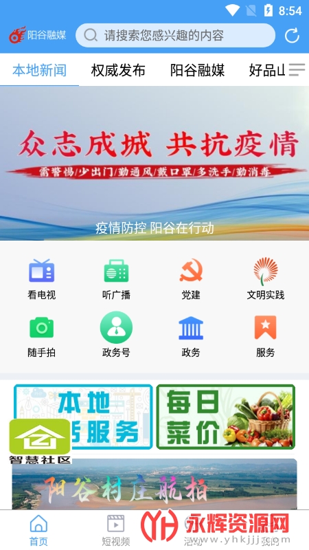 阳谷融媒手机app官方版是为当地居民朋友们提供的融媒体综合服务软件,在这里你可以查看最新的本地资讯内容,还可以学习党建知识以及观看直播,有喜欢的朋友们欢迎来永辉资源网下载哦!