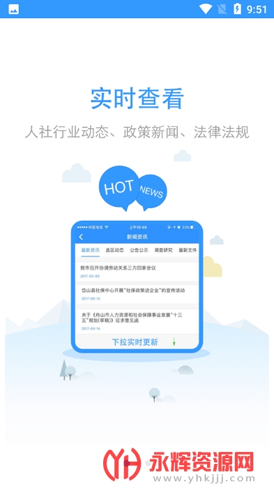 舟山人社app专为舟山市市民们提供服务,用户们可以在这里查询社保、劳动关系,还可以查看最新的政策信息,了解最新的动态资讯,还可以在线办理各种人社业务,随时随地在线即可办理,非常的方便快捷,无需出门!欢迎感兴趣的朋友们前来永辉资源网下载!