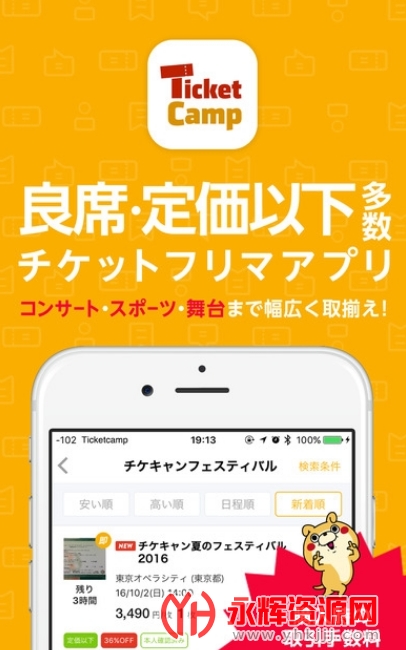 门票阵营是购票和用户的国内1号销售的应用程序。在处理演唱会,现场,体育(棒球和足球),舞台,Yoseki - 价格跟随体裁广泛,如电影票!仅在“百日元”的点◎礼品现在应用的所有用户多点给介绍朋友的时候了!便宜的船票,你可能会加入!免费的交易费买家!从哪里可以购买门票的交易也