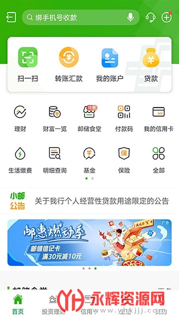 邮储银行手机银行新版是一款非常不错的掌上银行生活服务手机软件,软件中为用户带来了非常全面的业务办理模式,帮助用户可以随时随地享受到便捷的银行业务办理,有需要的朋友就快来永辉下载体验吧!