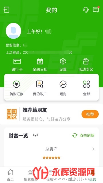 投资理财:提供基金、理财、国债、保险、贵金属、存管业务等功能。