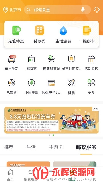 邮政服务:提供邮乐特卖、中国集邮、速递物流、中邮阅读等邮政特色服务。