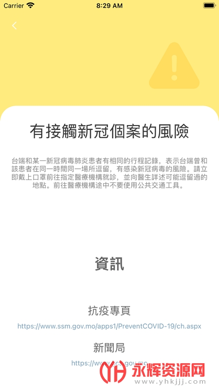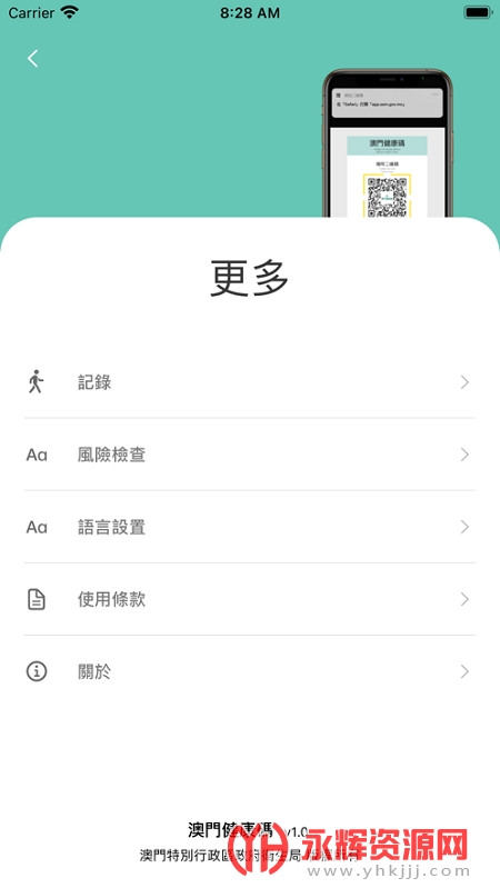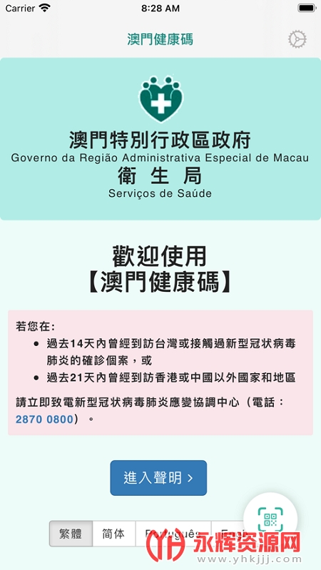 澳门健康码app是一款十分好用的防疫出行服务软件,使用这款软件可以一键展示健康码来方便你在澳门进行出行,有需要的朋友们可以来永辉资源网下载使用哦!