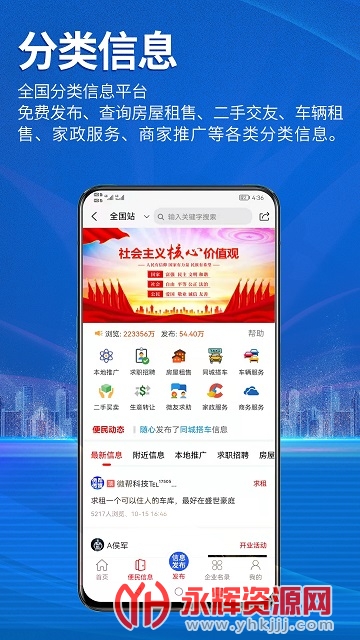 在软件中,有为用户提供的十分全面的日产更新的发布,帮助用户在线的进行一键免费的发布查询,对于各种的便民信息和推广信息进行查看。