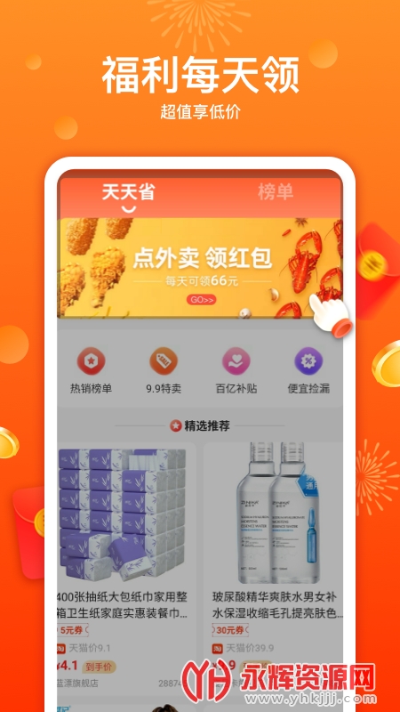 优荔多省app是能让大家省下许多钱的省钱购物软件,软件中有着超多精选的好物商品,你可以放心进行挑选,而且经常有一元购的活动。还在等什么呢?快来永辉资源网下载吧!