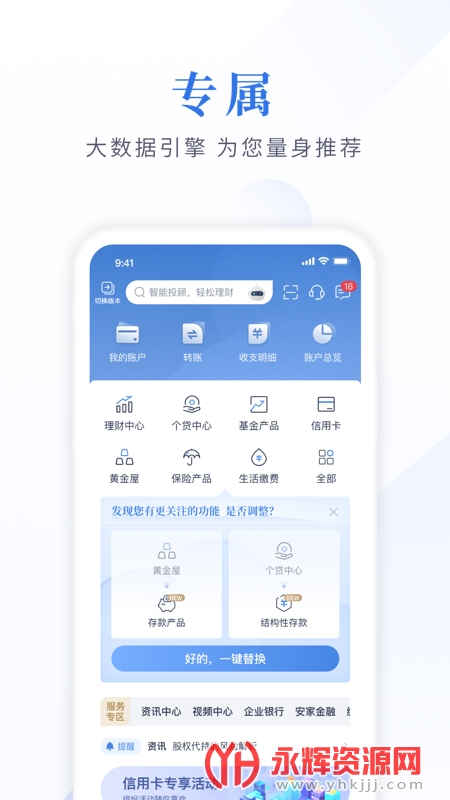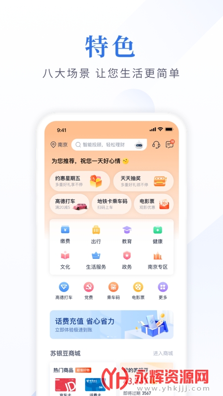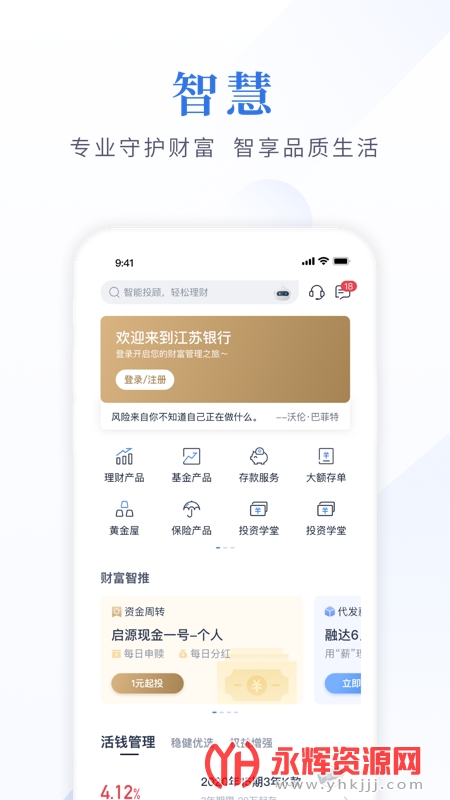 江苏银行手机银行专业版是给江苏市民朋友们提供的手机银行软件,在软件中你能办理线上转账、金融理财、贷款资讯、手机充值等等超多业务,有需要的朋友们可以来永辉资源网下载使用!