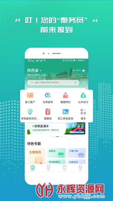 秦务员App陕西政务服务是一款便捷的掌上政务生活服务手机软件,软件通过了先进的互联网技术为陕西各个地区的居民群众整合了非常方便的线上政务办理服务,帮助用户随时了解各方面的政策举措,及时办理相关的事务,有需要的朋友就快来永辉下载体验吧!