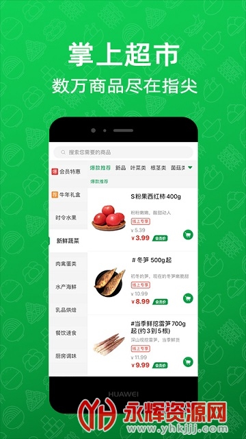 三江云菜是一款非常不错的掌上购物生活服务手机软件,软件中为用户带来了非常多样的优质商品资源可以挑选,其中包含的商品类型他也是比较的多样,能够满足每一位用户的购物需求,有兴趣的朋友就快来永辉下载体验吧!