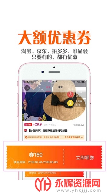 云券app:集淘宝优惠券、天猫优惠券、京东优惠券、拼多多优惠券、唯品会优惠券、天猫超市于一体的大额隐藏券淘券平台。