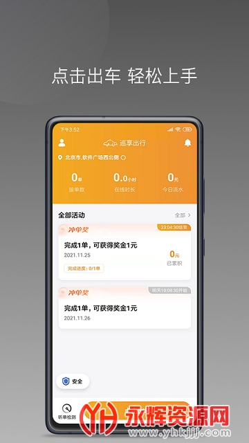 出车的时间非常的自由,在任何时间段都可以去开启自己的接单模式。