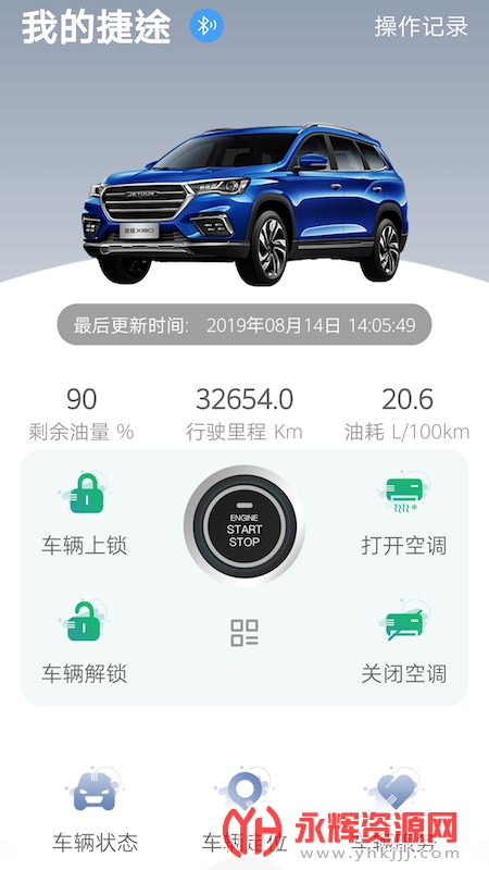 捷途汽车app是为广大捷途汽车的车主朋友们提供的智能汽车软件,使用这款软件可以与你的汽车进行互联,实时查看汽车的剩余油量、胎压、油耗。还能一键锁车、定位等等。有需要的朋友们欢迎来永辉资源网下载哦!