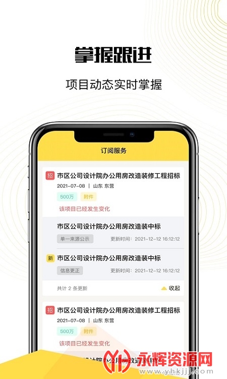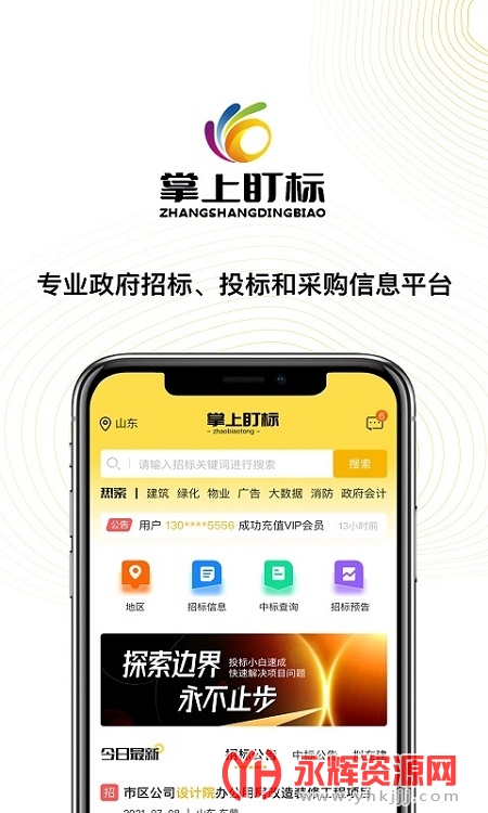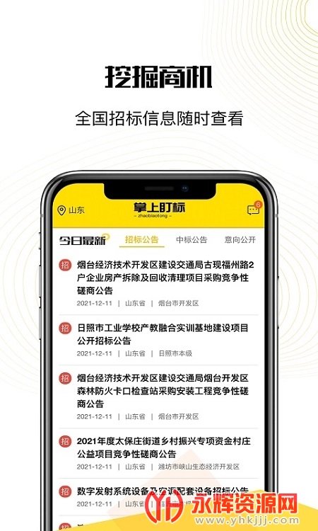 掌上盯标app是一款十分可靠的招标投标应用软件,在这里你可以实时观看招投标的信息,让你轻松找好时机。有需要的朋友们欢迎来永辉资源网下载使用哦!
