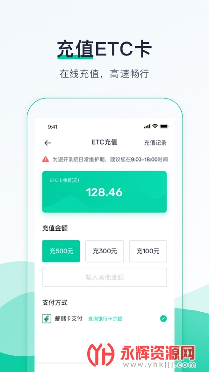 3、官方渠道随时随地申请、充值ETC卡,告别排队与等候,来一场说走就走的高速旅行