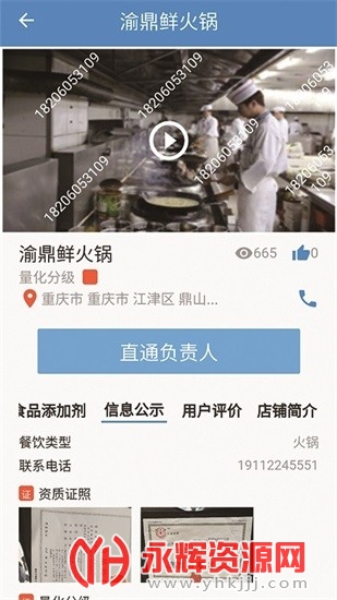 可以看到餐饮单位的后厨实时视频、安全资质、消费评论。