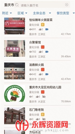 重庆市阳光食品app是一款非常权威的食品安全监管平台,使用这款软件你可以查看当地各家美食商家后厨卫生情况以及营业资质执照等等,有需要的朋友们欢迎来永辉资源网下载使用!