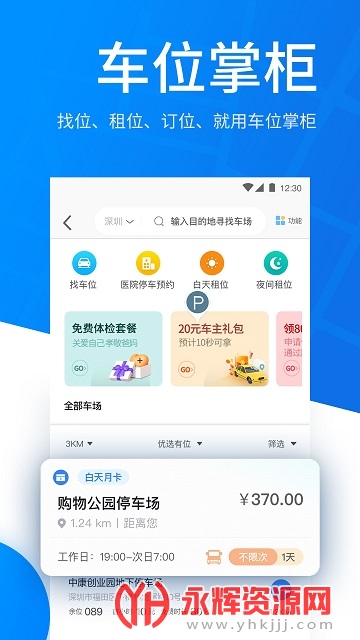 快速查找目的地停车场,停车费、空余车位实时掌握,掌上车位预定,轻松出行。