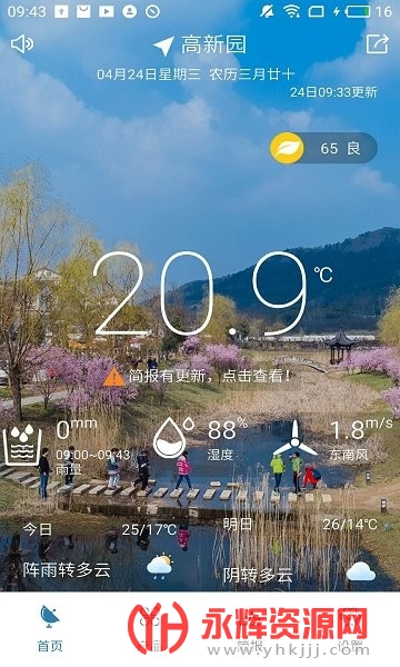 主要包括天气实况和未来天气提醒