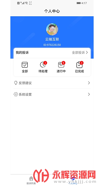 展示投诉列表,在线能够清楚的查看,及时的处理投诉的信息