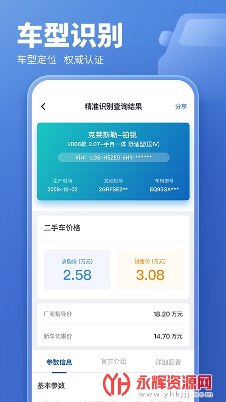 二手车估价app计算器查询软件是为广大朋友们提供的汽车服务软件,使用软件能让你轻松了解各种不同品牌的进口汽车报价信息,对这款软件感兴趣的朋友们可以来永辉资源网下载哦!