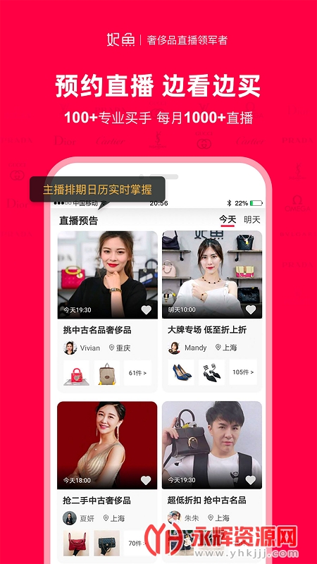 妃鱼二手奢侈品平台是一款非常可靠的二手奢侈品直播交易软件,软件中每天都会有导购人员进行实时直播为您介绍奢侈品,你可以按需进行选购,质量都是有所保障的。有需要的朋友们快来永辉资源网下载吧!