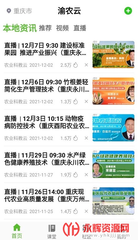 渝农云APP是一款十分优质的农业知识学习软件,在这里你可以了解许多农业相关资讯内容,还可以学习到许多农作物的优质种植方法,有需要的朋友们欢迎来永辉资源网下载哦!