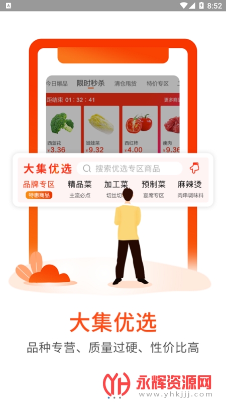淘大集生鲜食品供应app是十分热门的手机买菜平台,软件中有着海量的新鲜蔬菜、生鲜好货以及生活用品进行供应,你可以在这里进行采购。都是可以为您上门配送的。有需要的朋友们欢迎来永辉资源网下载哦!
