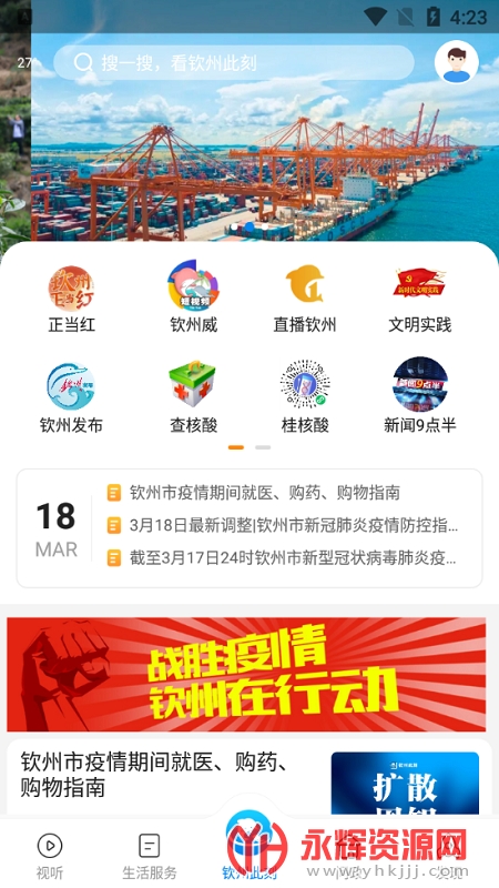 钦州此刻app下载2022最新版是为钦州当地居民提供的便民生活服务软件,这款软件中你能了解到广西当地最新新闻资讯动态,还有着防疫信息以及政务相关业务,有需要的朋友们欢迎来永辉资源网下载使用哦!