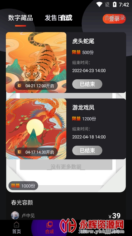 这是一款新上线的数字藏品平台,注册即可获取免费的直盒,后期加入交易模式。