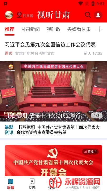 视听甘肃客户端官方最新版(甘肃融媒题中心app)是为甘肃当地朋友们打造的新闻资讯阅读软件,在软件中你能了解到城市热点新闻内容,还可以观看当地电视台的实时直播,有需要的朋友们不妨来永辉资源网下载哦!