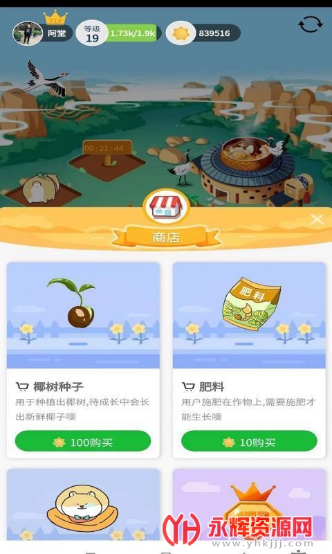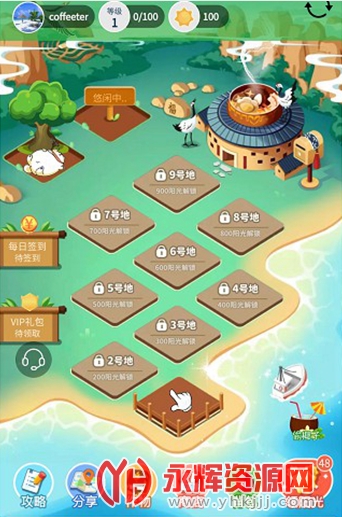 新用户登录后,免费赠送获得1块土地,1颗种子,15袋肥料,100阳光,一张看守犬卡。