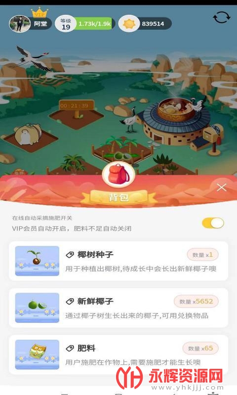 这里为用户朋友带来了火神椰子赚钱软件,这是一款集休闲制造玩法并且可以赚钱的游戏,玩家可以在游戏中来种椰子,种的越多奖励越多,就可以兑换红包了,整体还是相当不错的,有喜欢的玩家朋友现在就来下载吧!
