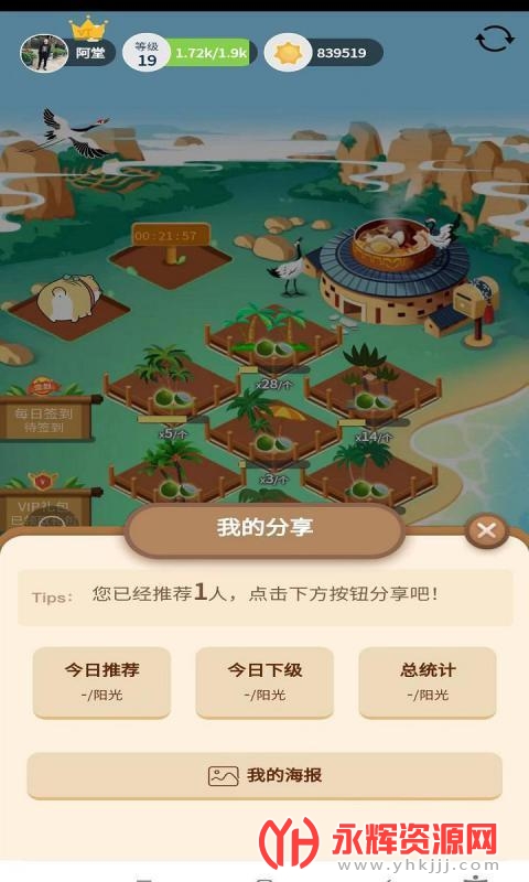 3、网页版火神椰子没法通过观看视频签到和领阳光,但是依然可以通过分享推广等其他途径获取阳光。