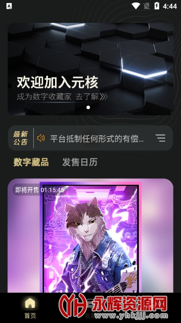 这里为用户朋友带来了元核数藏APP,这是一款比较新颖的数字藏品交易服务平台,用户可以在这里了解到全面的数字藏品内容,并且根据自己的需求来进行选择交易,其中数字藏品的信息都是非常明确的,有需求的用户欢迎来下载使用吧!
