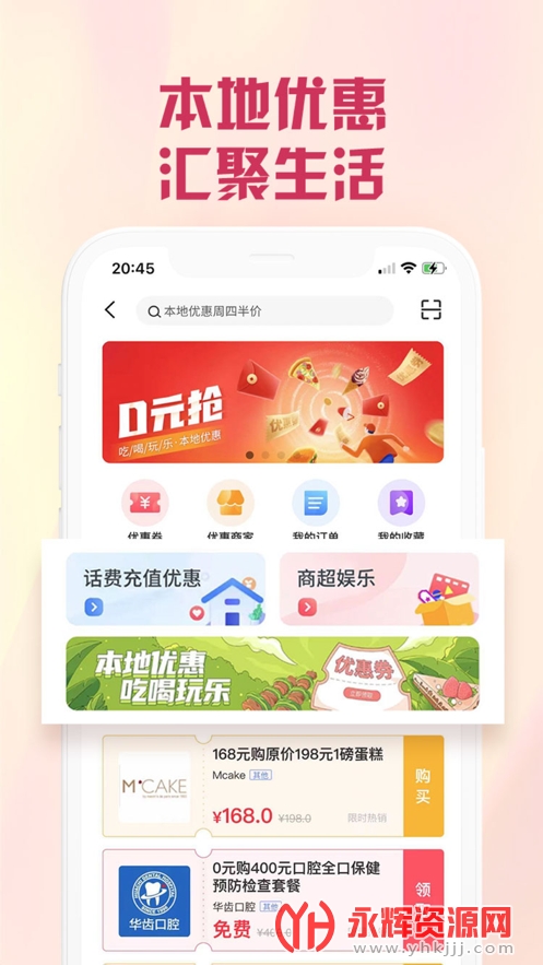 2、【本地优惠 汇聚生活】 海量优惠券最低0元抢,美食、电影、商超多种生活场景全覆盖,更有每周品牌日5折活动,趣享潮流生活!