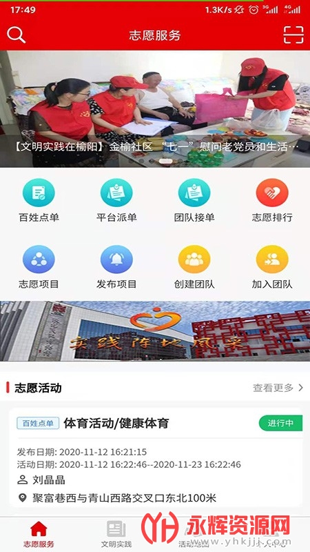 3、该平台就会实时的关注志愿者的最新动态,有什么活动你都可以第一时间看到。
