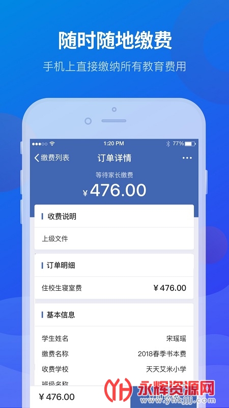 2、随时随地缴费,直接在手机上缴纳企业所有学生的教育管理费。