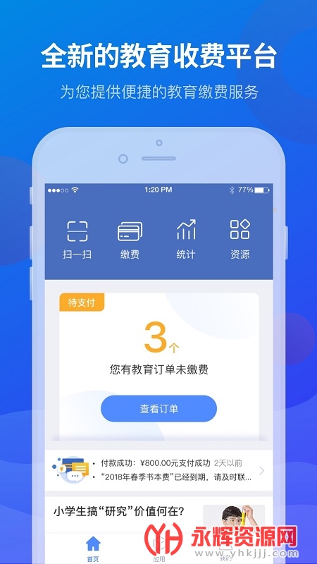 1、全新的教育收费平台,为您提供便捷的教育缴费服务。