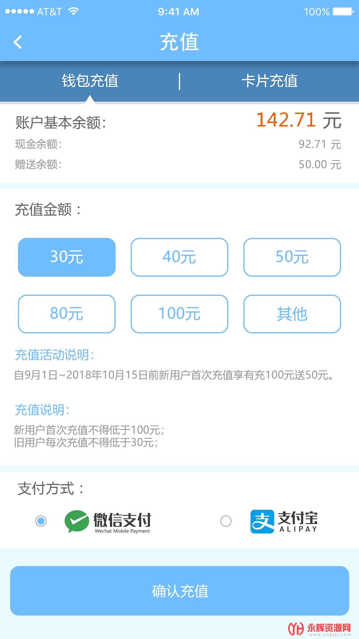 1、在线充值,用户可以随时选择往自己的账户或者是卡片充值,使用非常方便。