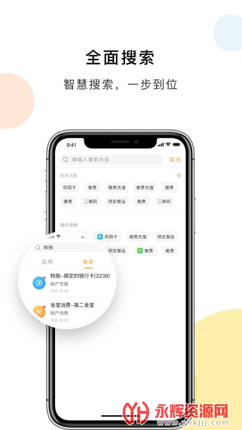 平台聚合更多校园卡功能服务,如预定、考勤、迎新注册离校、缴费、门禁、校友等