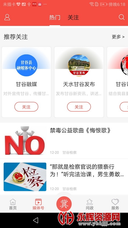 4、还能够在“媒体号”界面快速的关注当地的新闻媒体