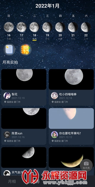 3、月历中,会出现每天的用户上传的各地拍摄到的月亮外形;