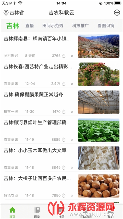 这里给用户朋友带来了吉农云平台app,这是一款专门为农业种植人员打造的服务软件,用户可以在这里了解到非常全面的资讯内容,学习到更多有用的知识,还可以随时随地看直播,助力农业科教,有需要的用户现在就来下载吧!