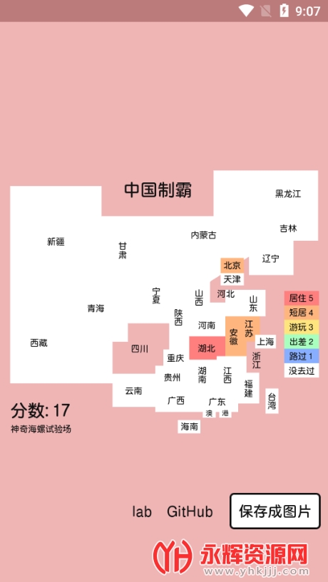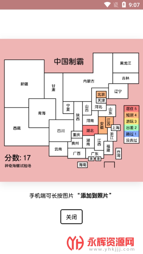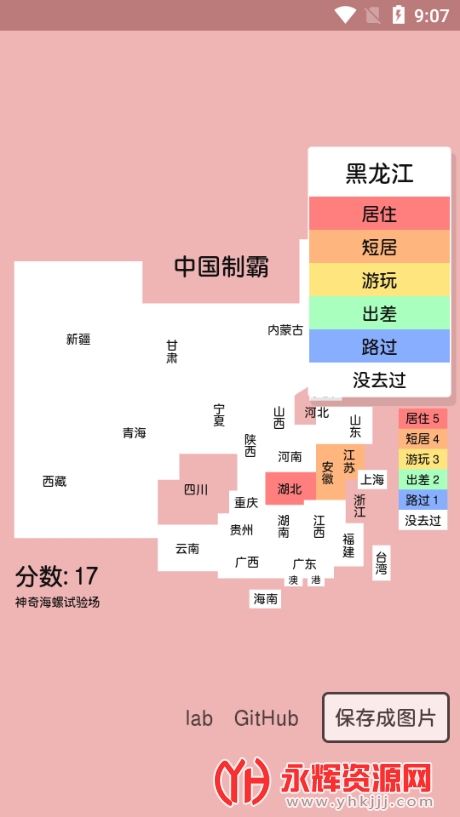 3、可以在线标记 居住过、住宿过、游玩过、换乘过或者路过的省级行政区域。