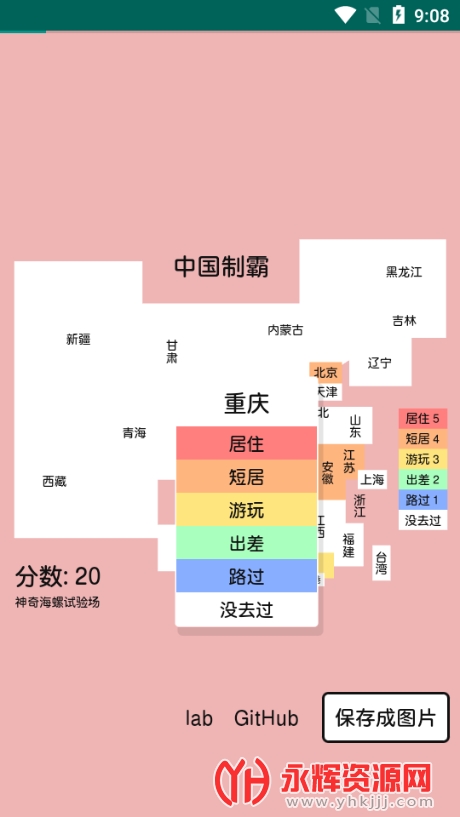 这里给大家带来了中国制霸生成器软件,这是一款便捷的地图标记工具app,在这里提供了轻松简单的标记分类,在您根据自身的经历完成标注后就可以查看自己的分数了,如果你的分数很高,说明你去过的地方很多,有兴趣的用户现在就来下载吧!