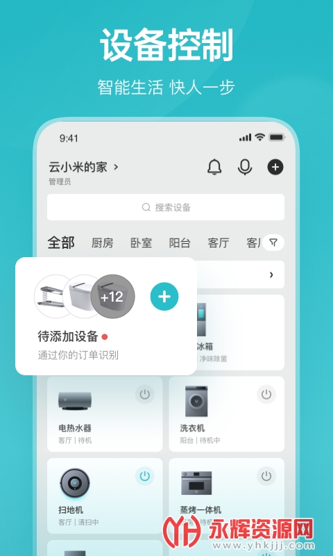 [设备控制]支持所有云米智能设备接入,多种联网方式,手机上就能轻松控制设备。