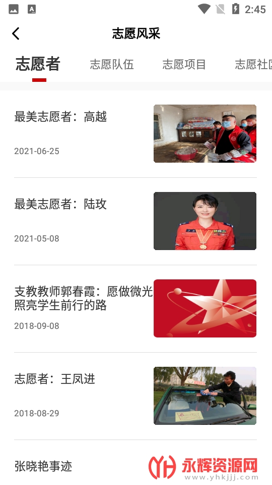 3、志愿者信息,浏览我县志愿者信息,了解近期公益项目发布情况。
